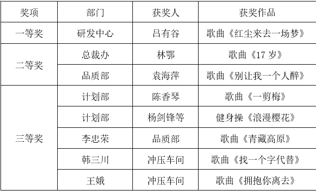 為了豐富公司企業(yè)文化氛圍,活躍公司氣氛,增強(qiáng)團(tuán)隊(duì)凝聚力,體現(xiàn)公司人文關(guān)懷,展現(xiàn)公司企業(yè)文化精神,公司于今年8月份舉辦了才藝競(jìng)賽活動(dòng),此次競(jìng)賽一改以往單一的唱歌形式,增添表演、朗誦和舞蹈等項(xiàng)目,以不同的表演形式表現(xiàn)員工的風(fēng)采,此次活動(dòng),各部門(mén)人員踴躍報(bào)名參與,展現(xiàn)了公司“客戶(hù)為先、誠(chéng)信負(fù)責(zé)、團(tuán)隊(duì)合作、務(wù)實(shí)創(chuàng)新”價(jià)值觀(guān)精神。