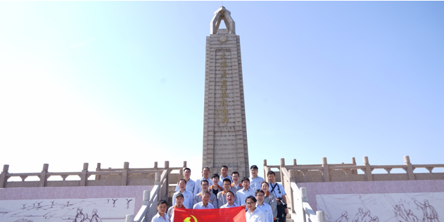 “我志愿加入中國共產(chǎn)黨……隨時準備為黨和人民犧牲一切,永不叛黨?!痹诩o念碑下黨員們面對黨旗,胸帶黨徽,莊嚴地舉起右手,重溫了入黨誓詞,進一步領(lǐng)悟了黨員的責任與使命。