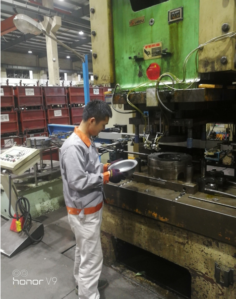 銳意創(chuàng)新,厲行節(jié)約,積極推動(dòng)班組生產(chǎn)工作跨上新臺階。如六寸沖壓人工抬料改自動(dòng)料吸裝置,提高生產(chǎn)效率 減少員工作業(yè)勞動(dòng)強(qiáng)度。從原來未改進(jìn)前一天生產(chǎn)5214片 到改進(jìn)后一天生產(chǎn)5929片,效率提升8.7% 六寸滾圈由于對焊焊接好后流到滾圈工位因鋼圈較小生產(chǎn)速度快流下來滾圈來不及冷卻導(dǎo)致滾圈操作工取鋼圈時(shí)手燙傷氣泡。后經(jīng)考慮滾圈至整形工序再不減少日產(chǎn)量同時(shí)提出使用機(jī)器人代替人工操作,給公司節(jié)約人工成本一年4—5萬元左右。